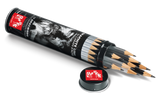 Para los especialistas, una gama de negros desde los más duros hasta los más suaves. Lápices con la gama más completa de cables de grafito. Cada lápiz está barnizado en un color que representa con precisión la dureza y profundidad del negro.