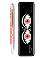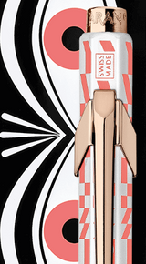 La edición limitada del 849 Alexander Girard nació del deseo de Caran d’Ache, Vitra y Studio Girard de decorar el 849 con los alegres patrones de culto ideados por Alexander Girard. Este creador de múltiples talentos revolucionó la historia del diseño del siglo XX al dejar su marca colorida y gráfica en los objetos cotidianos. Con un gran interés en las texturas, los patrones y el arte popular, Alexander Girard recopiló los instrumentos de escritura que le permitieron expresar su creatividad.