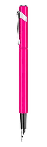 Hay una nueva adición al famoso surtido de elegantes bolígrafos 849: la pluma estilográfica 849 con un estilo brillante. Con sus líneas más redondeadas, la 849 Pluma estilográfica revela una personalidad y comodidad única. Los llamativos y energéticos colores llaman la atención de esta Colección. Los dos colores fluorescentes (púrpura, amarillo) le dan a las líneas gráficas una chispa extra. El azul marino y el negro mate realzan el diseño contemporáneo y la estética industrial de estos instrumentos de escritura. Mientras mantiene una calidad 100% fabricada en Suiza, la 849 Pluma destaca el espíritu audaz y creativo de Caran D'Ache.