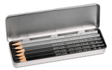 Para los especialistas, una gama de negros desde los más duros hasta los más suaves. Lápices con la gama más completa de lápices de grafito. Cada lápiz está barnizado en un color que representa con precisión la dureza y profundidad del negro.