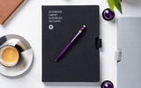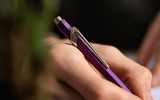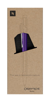 Este año, se eligió la cápsula ‘Arpeggio’ de color morado oscuro y suave satinado, un éxito de ventas Nespresso, para envolver el cuerpo del Bolígrafo.