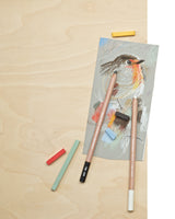 1 Detalles y colores planos: los dos medios y su carta de colores idéntica permiten una gran riqueza de trazos, de texturas y de combinaciones : utilizar la punta del Pastel Pencils para el trabajo de detalle y las aristas del Pastel Cubes para grandes colores planos.